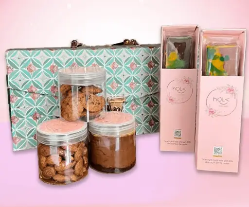 This exquisite gift box allows you to add a personalized touch to this sweet gesture. In this gift hamper, you can add any 4 jars and 4 chocolates of your choice.